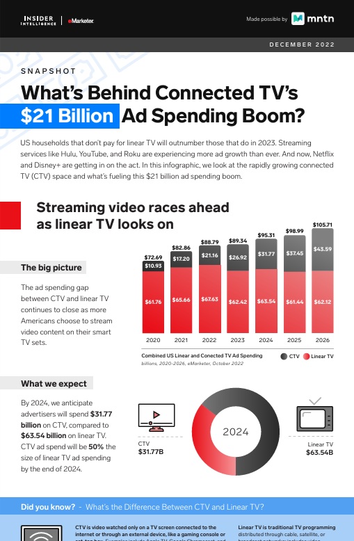 Sponsored article written with EMARKETER on behalf of MNTN (click to read more).Whitepaper for MNTN, targeting the automotive dealership industry (click to read more).A quick hit guide detailing how MNTN Performance TV benefits enterprise brand marketers (click to read more).